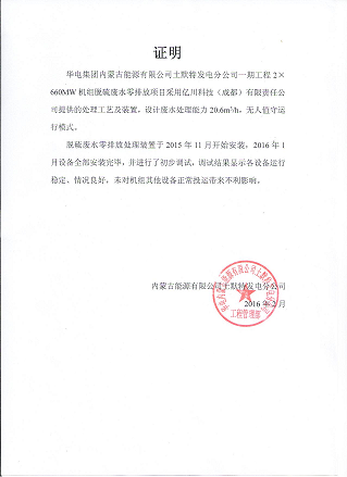 ♣λ≠ 2016年(nián)9月(yuè),我♥<公司向內(nèi)蒙古土(tǔ)右電(diàn)廠(chǎn≥¥₹g)提供的(de)2×660MW機(jī)組脫硫廢水(shuǐ)零排∏γ放(fàng)(煙(yān)氣蒸發工(gōng)藝)處理(lǐ)裝置,通 ©♥≥(tōng)過西(xī)安熱(rè)工(gōng)研究院性能(né↕≠ng)考核,達到(dào)設計(jì)要(yào)求,✘ 土(tǔ)右電(diàn)廠(chǎng)對(duì)•↕σ整套裝置進行(xíng)了(le)現(xiàn)場<↑→(chǎng)驗收,驗收人(rén)員(yuán)充分(fēn)肯定了(l §e)工(gōng)藝和(hé)裝置的(de)先進性,這(zhè)标志(zhì)↓×Ω著(zhe)脫硫廢水(shuǐ)煙(yān☆↔₽)氣蒸發工(gōng)藝在土(tǔ)右電(₹β←diàn)廠(chǎng)成功應用(yòng)。