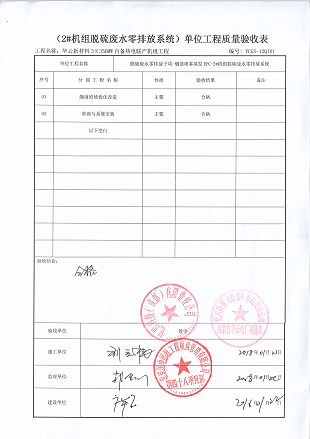 #2号機(jī)組€β¥©脫硫廢水(shuǐ)零排放(fàng)168小(xσ×iǎo)時(shí)試運期間(jiān)系統各項指标優良、平均廢水(shu±δ€ǐ)處理(lǐ)量4.5噸/小(xiǎo)時(shí)、廢水(shuǐ)處理(lǐ)成本9.672元/噸,熱(rè)控保護投入率100%、熱(rè)控自(zì)動投入率100₩•'≤%、電(diàn)氣保護投入率100%、電 ♦(diàn)氣自(zì)動投入率100%,高(gāo)水(shuǐ)平完成了×λ✘☆(le)華雲新材料脫硫廢水(shuǐ)零排放(fàng)子(zǐ)項-煙(y¶σ§≤ān)道(dào)噴霧蒸發EPC-#2機(jī)組脫硫廢∑↔♠水(shuǐ)零排放(fàng)工(gōng)程的(de ©)建設。