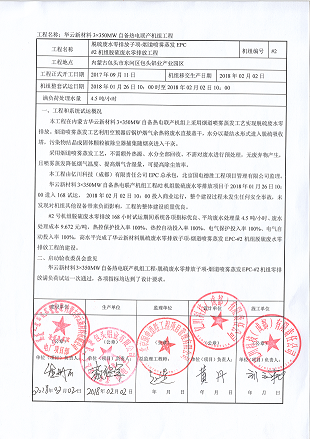 我公司承擔的(de)內(nèi)蒙古華雲新材料3×350★≠↕∞MW自(zì)備熱(rè)電(diàn)聯産機(jī)組工₹✔(gōng)程脫硫廢水(shuǐ)零排放®₹Ω (fàng)子(zǐ)項-煙(yān)道(dào)噴霧蒸發EPC #Ω₩2機(jī)組一(yī)次性通(tōng)過168性能(néng↔≤)考核,通(tōng)過業(yè)主方驗•®$©收。