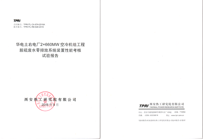♣λ≠ 2016年(nián)9月(yuè),我♥<公司向內(nèi)蒙古土(tǔ)右電(diàn)廠(chǎn≥¥₹g)提供的(de)2×660MW機(jī)組脫硫廢水(shuǐ)零排∏γ放(fàng)(煙(yān)氣蒸發工(gōng)藝)處理(lǐ)裝置,通 ©♥≥(tōng)過西(xī)安熱(rè)工(gōng)研究院性能(né↕≠ng)考核,達到(dào)設計(jì)要(yào)求,✘ 土(tǔ)右電(diàn)廠(chǎng)對(duì)•↕σ整套裝置進行(xíng)了(le)現(xiàn)場<↑→(chǎng)驗收,驗收人(rén)員(yuán)充分(fēn)肯定了(l §e)工(gōng)藝和(hé)裝置的(de)先進性,這(zhè)标志(zhì)↓×Ω著(zhe)脫硫廢水(shuǐ)煙(yān☆↔₽)氣蒸發工(gōng)藝在土(tǔ)右電(₹β←diàn)廠(chǎng)成功應用(yòng)。