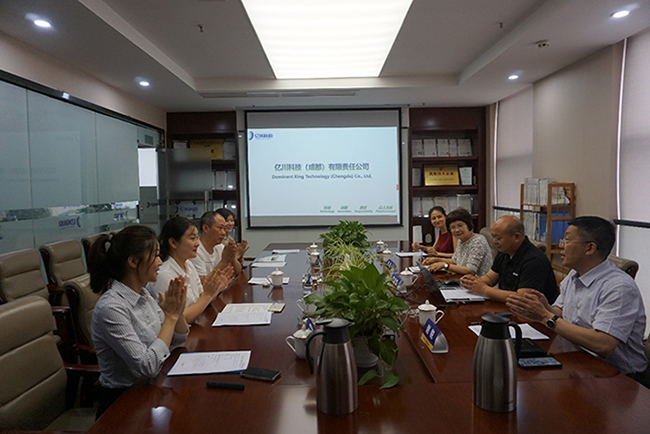 億川科(kē)技(j∞™£βì)副總經理(lǐ)陳永生(shēng)首先緻歡迎詞,對πλ(duì)郎酒股份公司一(yī)行(xíng)的(de)到(dà↔δλ"o)訪表示熱(rè)烈歡迎。